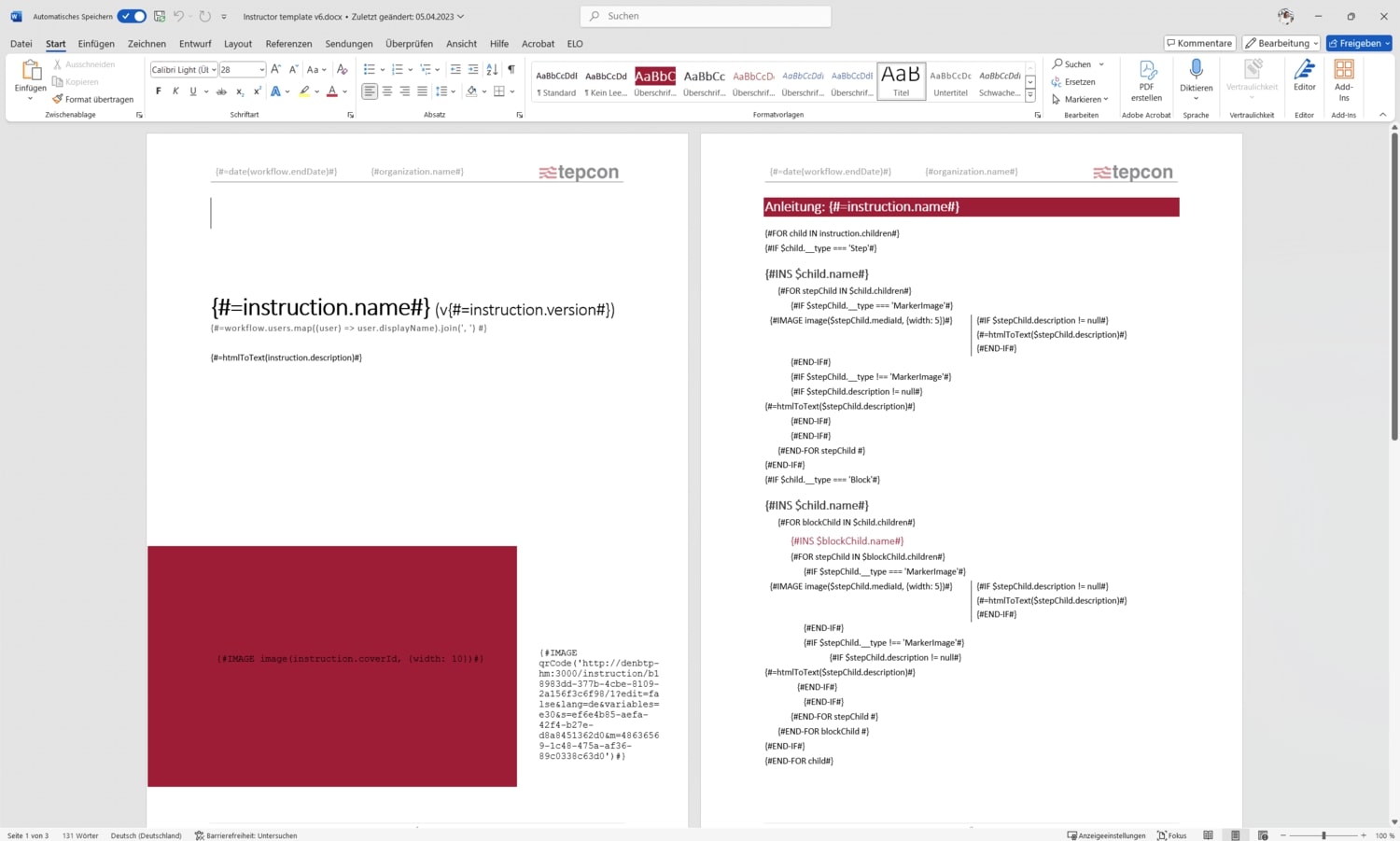Für den Export von Anleitungen können Word-Templates verwendet werden – dabei handelt es sich um gewöhnliche Word-Dateien, die in Microsoft Word bearbeitet werden können.
