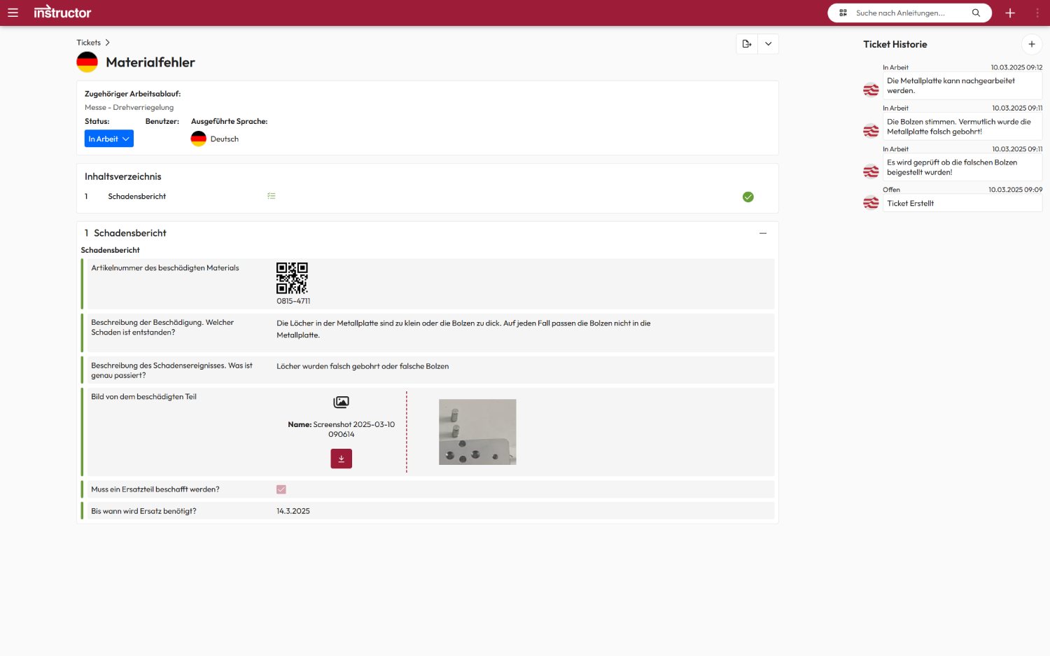 Im Arbeitsablauf einer Anleitung wird genau erfasst, wer ein Ticket erstellt hat, in welchem Schritt es angelegt wurde und wann die Bearbeitung erfolgte.